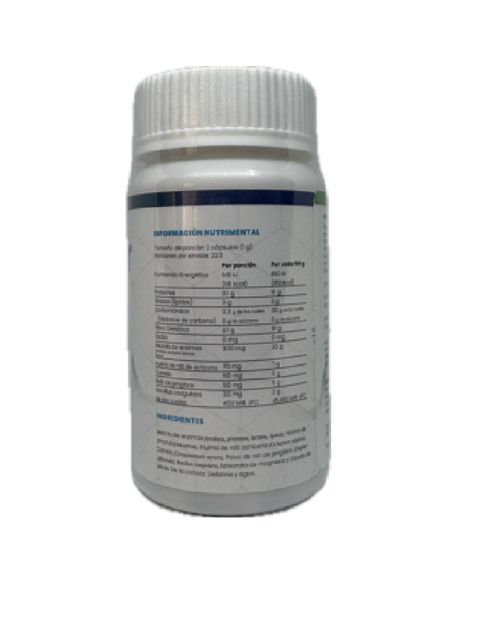 - Mezcla de enzimas (Amilasa, proteasa, lactasa, lipasa) 300.0 mg por porción.